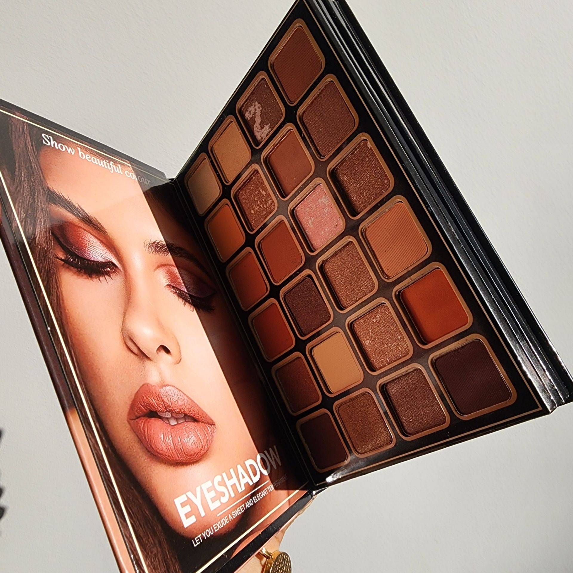 و دارای ۳۹ رنگ سایه مات ومخملی و شاین و رژگونه و هایلایتر و کانتور و رژ