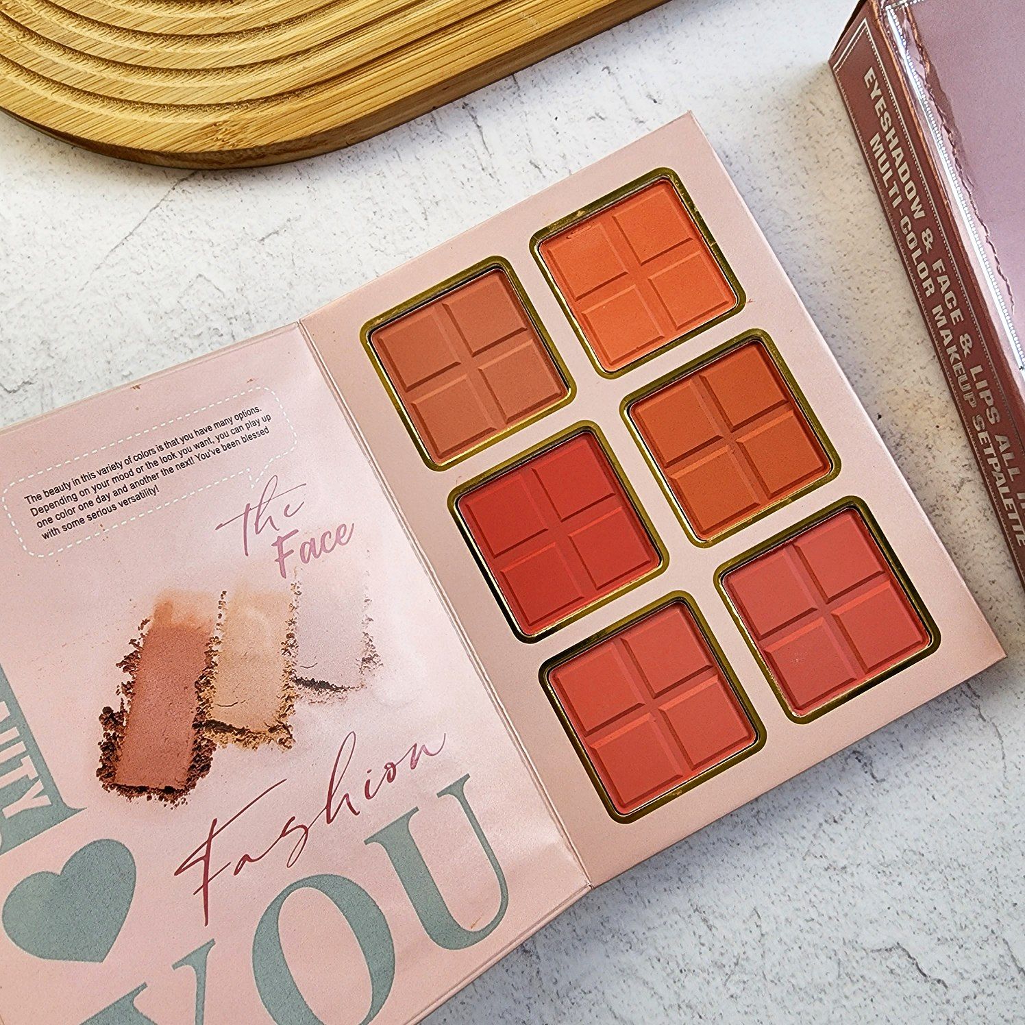 و دارای ۷۸ رنگ سایه مات ومخملی و شاین و رژگونه و هایلایتر و کانتور و رژ