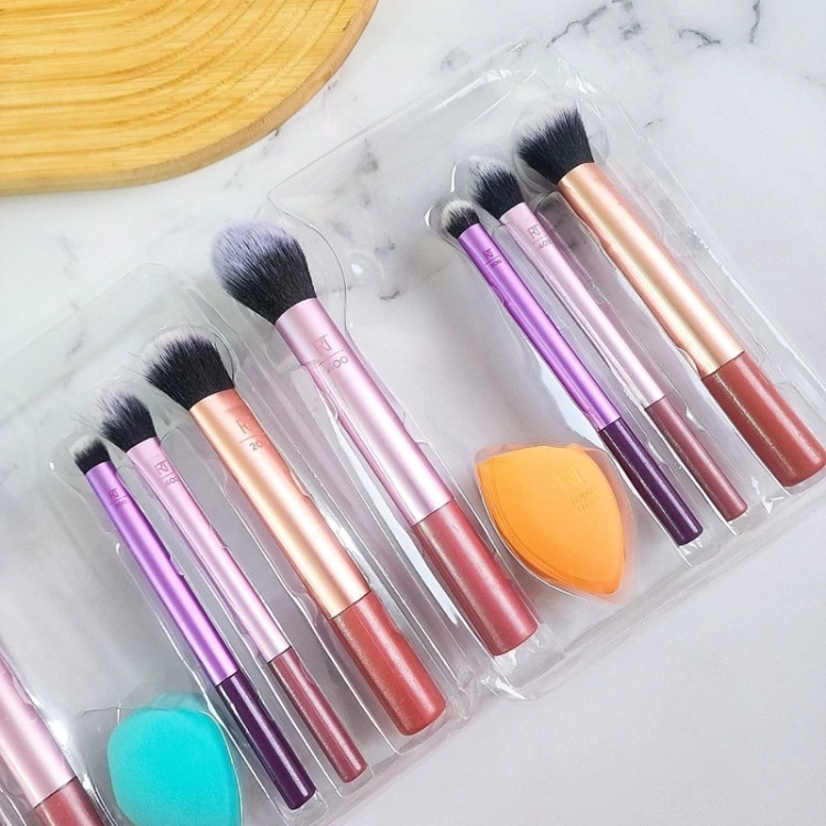ست براش ریل تکنیک ست براش حرفهای + بیوتی بلندر شامل براشهای مخصوص کرمپودر، کانتور، سایه و رژگونه موی نرم، بدون ریزش پخش یکنواخت و تمیز مواد آرایشی با این ست، میکاپت حرفهایتر از همیشه میشه 🌹دوستان ست براش با 2 عدد پد تمام شده