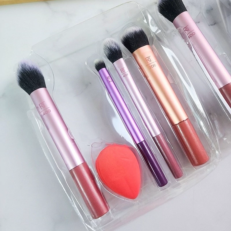 ست براش ریل تکنیک ست براش حرفهای + بیوتی بلندر شامل براشهای مخصوص کرمپودر، کانتور، سایه و رژگونه موی نرم، بدون ریزش پخش یکنواخت و تمیز مواد آرایشی با این ست، میکاپت حرفهایتر از همیشه میشه 🌹دوستان ست براش با 2 عدد پد تمام شده