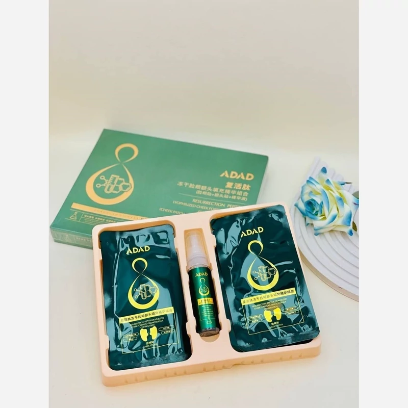 ماسک کلاژن محتویات: 4 تکه برای ناحیه جلویی (پیشانی) • 4 جفت تکه برای گونه • 1 بطری اسپری تکه های پیشانی برای از بین بردن سریع چین و چروک و افزایش الاستیسیته پوست تکه های گونه برای فرمدهی و بالا بردن گونهها اسپری به منظور سریع در فرآیند جذب و اثر بخشی بیشتر شامل کلاژن محلول به صورت نانو و جذب به لایه های عمیق پوست تنظیم کننده PH و حفظ رطوبت پوست آبرسانی، احیا و جوانسازی پوست بهبود خاصیت ارتجاعی پوست و کاهش ظاهر ست ماسک کلاژن جذبی