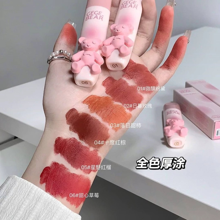 رژ طرح کره ای خرسی برند gege bear کیفیت تضمینی جعبه دار مناسب هدیه شامل 6 رنگبندی عالی