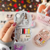 خیاطی مسافرتی کرومی وارداتی • دارای: • 6 رنگ نخ • سنجاق قفلی • سوزن • پنس • دکمه و دکمه جفتی • سوزن ته گرد • قیچی کیت خیاطی کرومی و فانتزی یک وسیله کاربردی در مدرسه، دانشگاه و مسافرت