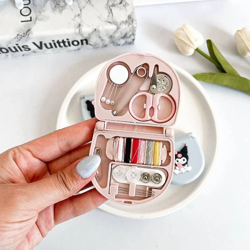 خیاطی مسافرتی کرومی وارداتی • دارای: • 6 رنگ نخ • سنجاق قفلی • سوزن • پنس • دکمه و دکمه جفتی • سوزن ته گرد • قیچی کیت خیاطی کرومی و فانتزی یک وسیله کاربردی در مدرسه، دانشگاه و مسافرت