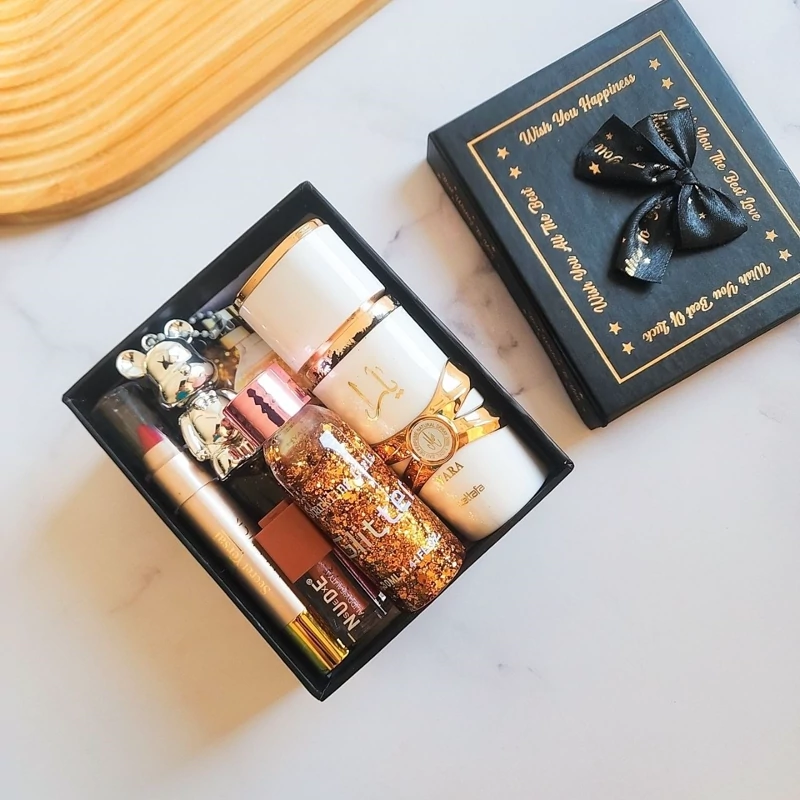 باکس کادویی مشکی 1.ادکلن یارا 2.رژ پیچی ورسای 3.شیشه آرزوها 4.لیپ گلاس طرح شیگلم 5.گلیتر 6.تینت خرسی 7.ماسک ورقه ایی همراه با باکس کادویی 🥰 باکس کادویی سفید 1.ادکلن یارا بویی خنکتر، گلی–میوهای با کمی حس پودری. مناسب فصل بهار و تابستان حجم 25میل 2.گلیتر 3.رژ مینی نود شاین 4.تینت خرسی 5.رژ مدادی ورسای 6.ماسک ورقه ایی همراه با باکس کادویی🥰 باکس کادویی زرد 1.ادکلن یارا 2.شیشه آرزوها 3.کرم مینی تیوپی گارنیر 4.رژ مینی شاین نود 5.تینت خرسی 6.کش مو 7.ماسک ورقه ایی همراه با باکس کادویی