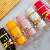 عطر های لاتافه (Lattafa) طراحی لوکس و رنگبندی جذاب مناسب هر سلیفه و هر فصل ماندگاری بالا پخش بوی عالی به خاطر حجم کوچیکشون خیلی جمعوجور و سبک هستن و بهراحتی توی کیف دستی یا حتی جیب جا میشن. با اینکه سایز کوچیک دارن، ولی غلظت بالا و ماندگاری خیلی خوبی دارن. انتخاب عالی برای تست چند رایحهی مختلف بدون خرید سایز بزرگ. خیلی مناسبه برای سفر یا هدیه دادن. Asad (مشکی): رایحهای گرم، شرقی و مردانه با ترکیب وانیل، ادویه و نتهای دودی. مناسب برای شب و مراسم رسمی. Yara (زرد): بویی شیرین و کرمی با حس وانیل و میوههای استوایی. رایحهای دلنشین و پرانرژی برای روزمره. Yara (صورتی): عطری ملایم، گلی–میوهای با حس خامهای و شیرین. خیلی زنونه و رمانتیک. Yara (سفید): بویی خنکتر، گلی–میوهای با کمی حس پودری. مناسب فصل بهار و تابستان. Yara (قرمز): رایحهای قویتر و شیرینتر، ترکیب میوههای قرمز و گلها. ماندگار و خاص برای مهمانیها.ج بستهبندی شیک، حجم کوچک و قابلحمل، این ست رو تبدیل به انتخابی عالی برای هدیه و استفادهی روزمره کرده حجم 25میل